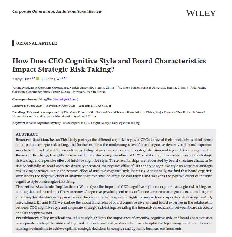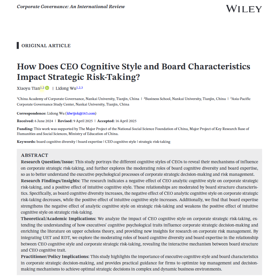 伟德国际1946bv李勇建教授在管理学顶刊ISR发表研究成果