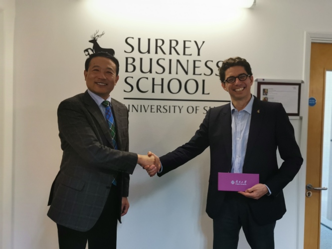 2019年4月17日至19日,伟德国际1946bv院长白长虹受邀率代表团访问英国,开拓与格拉斯哥大学、斯特克莱德大学和萨里大学等高校的交流与合作。
