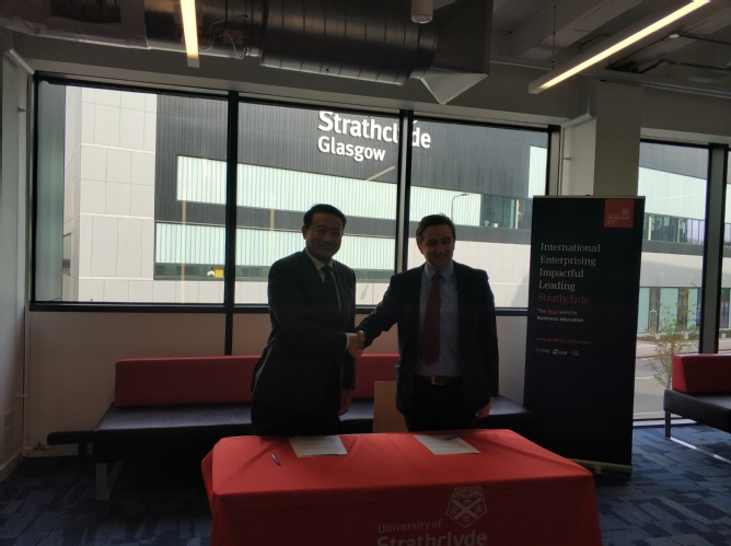 4月18日,代表团访问了斯特克莱德大学伟德国际1946bv。该院负责国际事务副院长Ian Wooton对伟德国际1946bv代表团的访问表示欢迎,表示两院合作项目在双方共同努力进展很快,第一批学生将于2019年9月来英攻读硕士学位。白长虹院长对斯特克莱德伟德国际1946bv的热情接待表示感谢,也希望借此次来访,能够加深了解,拓宽合作领域,加快合作步伐。访问期间,白长虹院长还与该校副校长兼伟德国际1946bv执行院长David Hillier教授签署了两院访学学生协议。