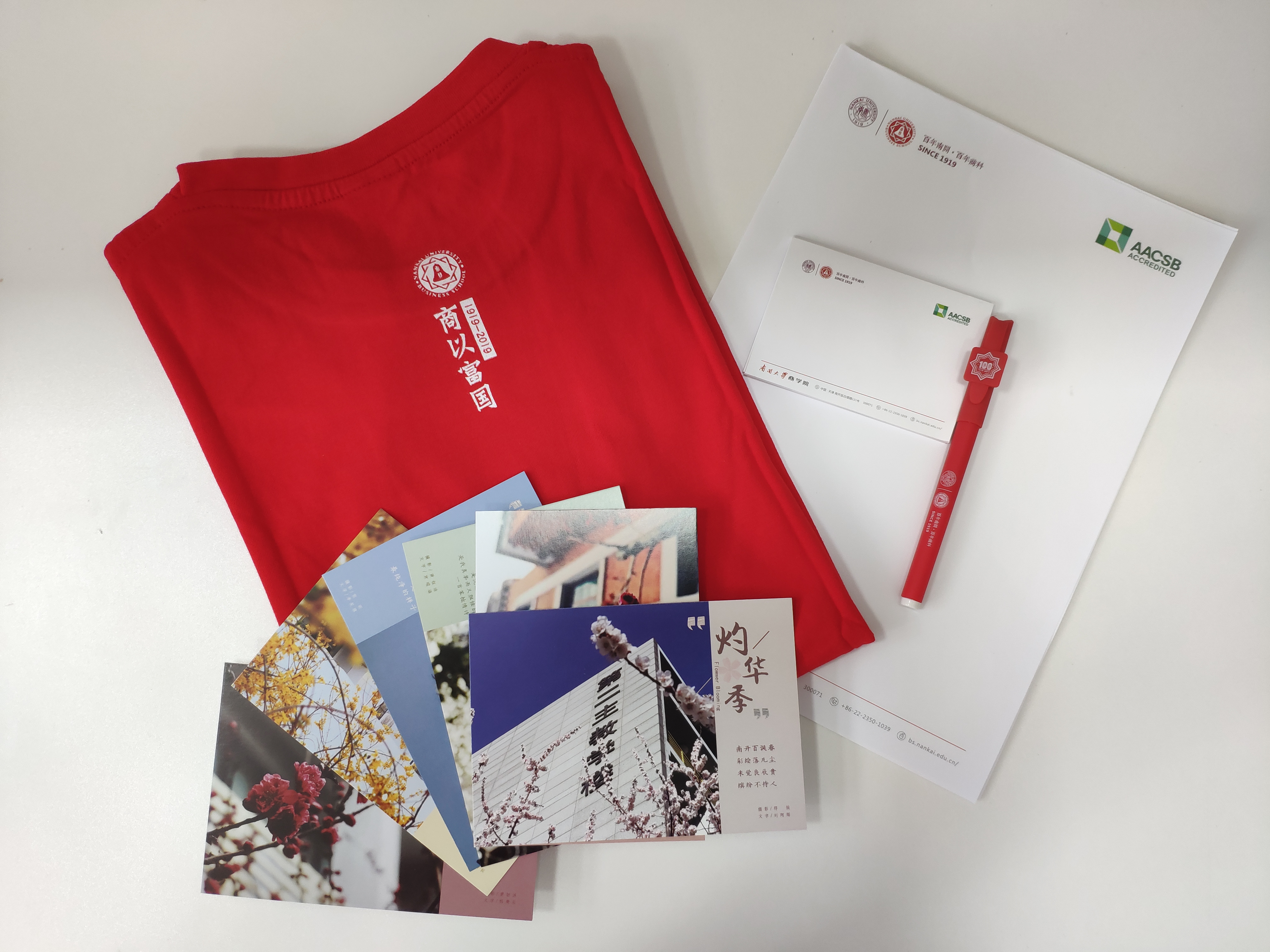 伟德国际1946bv校友办公室为校友们准备了百年校庆纪念T恤、伟德国际1946bv学生设计的南开主题明信片、百年商科主题手环等礼物。