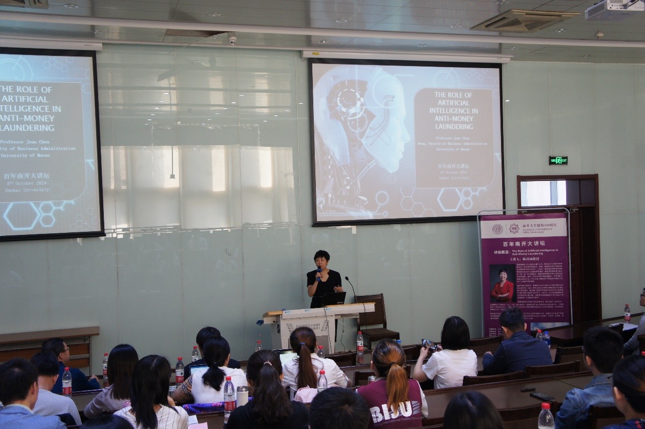 (通讯员:王若楠 廖杏茵)2019年10月08日,澳门大学工商管理学院院长陈靖涵教授做客“百年南开大讲坛”,以“人工智能在反洗钱的作用”为主题为南开师生带来精彩学术讲座。