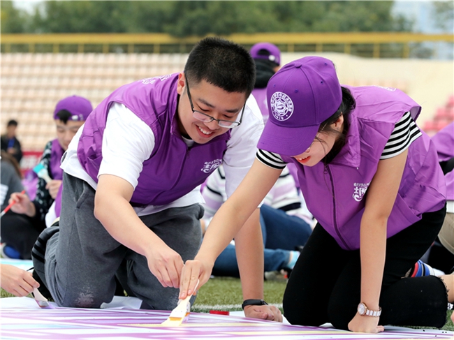 在八里台校区体育场,展开一副宽19.19米,高20.19米的巨型画布,寓意伟德victor1946从1919年到2019年走过百年峥嵘岁月。巨型画布被分为100份,分别由100个小组参与绘制,最终拼接成完整的画作,用近400平方米的画布触摸百年南开时光纹路,描摹南开新百年。