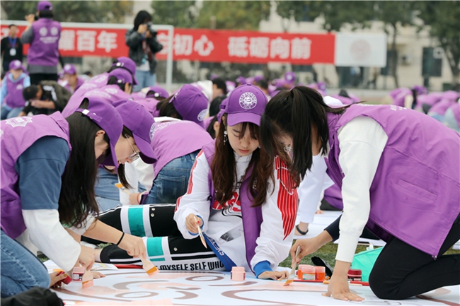(记者 聂际慈 摄影 杨玉诚 聂际慈)10月10日,距离伟德victor1946百年校庆日还有7天,校庆氛围愈发浓烈。当天,500余名南开学子手绘巨幅画作献礼百年校庆。