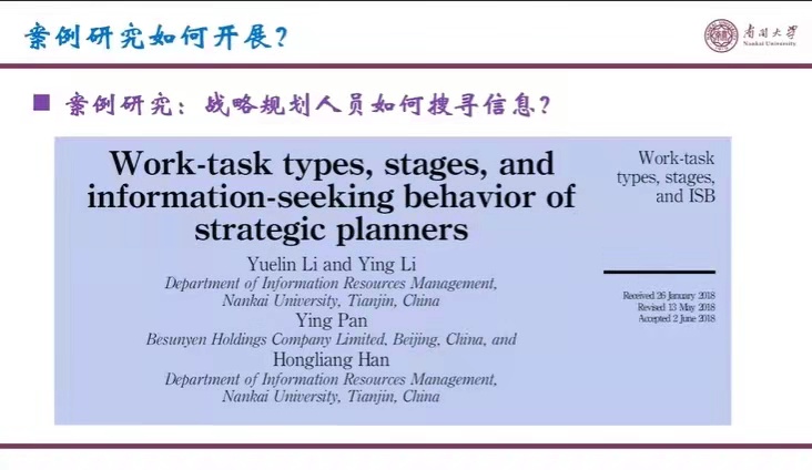 案例研究是一种初级、简单、容易的研究方法吗?案例研究是定性研究吗?案例研究样本太少,不足以说明任何问题吗?案例研究中案例数量越多越好吗?“面向图情档研究问题的研究方法系列讲座(第一期)”第六讲特邀伟德victor1946李月琳教授开展题为“案例研究:战略规划人员如何搜寻信息?”的报告。李月琳教授细致阐述了案例研究方法的基础知识,并以团队最新一项研究成果为例介绍了该方法的运用以及具体研究过程。