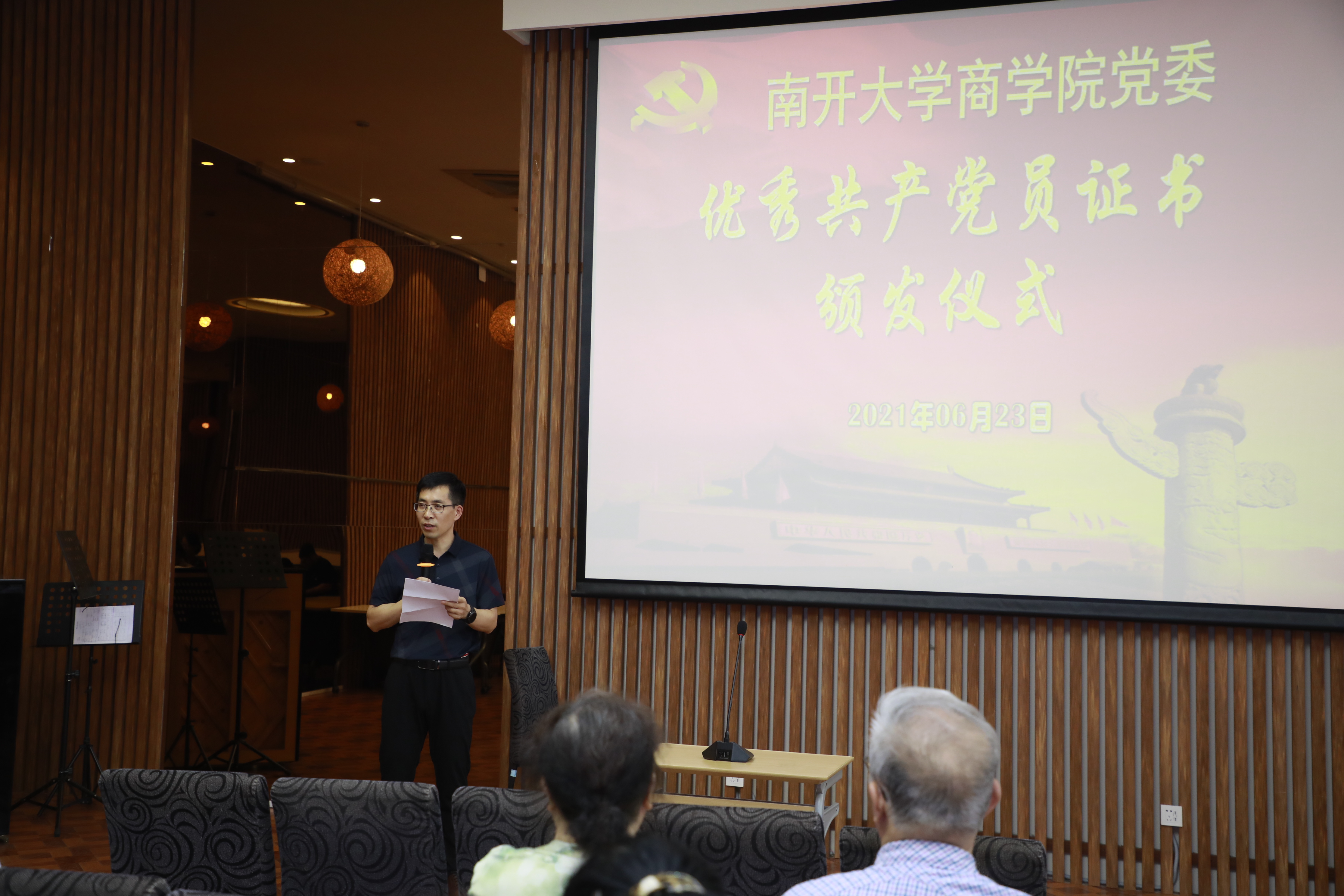 孙跃书记宣读了学院党委关于表彰优秀共产党员、优秀党务工作者和先进基层党组织的决定,授予王学秀等27名同志“优秀共产党员”称号,授予陈红艳等8名同志“优秀党务工作者”称号,授予伟德国际1946bv行政党支部等3个党支部“先进基层党组织”称号。院领导分别为获奖个人和集体颁奖。