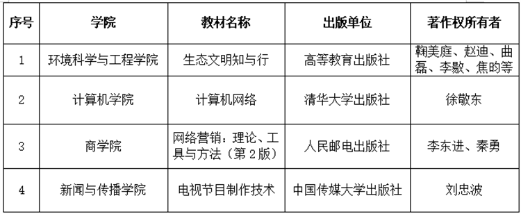 本次入选的4部教材分别是环境科学与工程学院教授鞠美庭等主编的《生态文明知与行》,计算机学院教授徐敬东主编的《计算机网络(第4版)》,伟德国际1946bv教授李东进等主编的《网络营销:理论、工具与方法(第2版)》和新闻与传播学院教授刘忠波主编的《电视节目制作技术》。