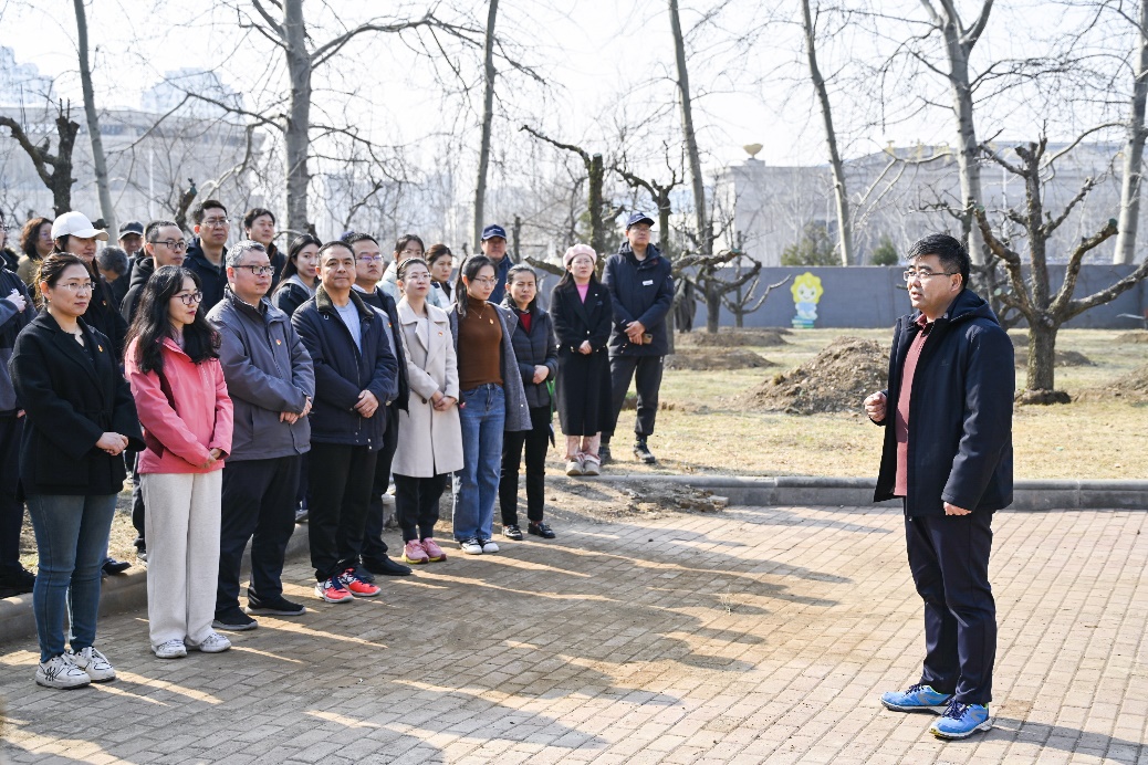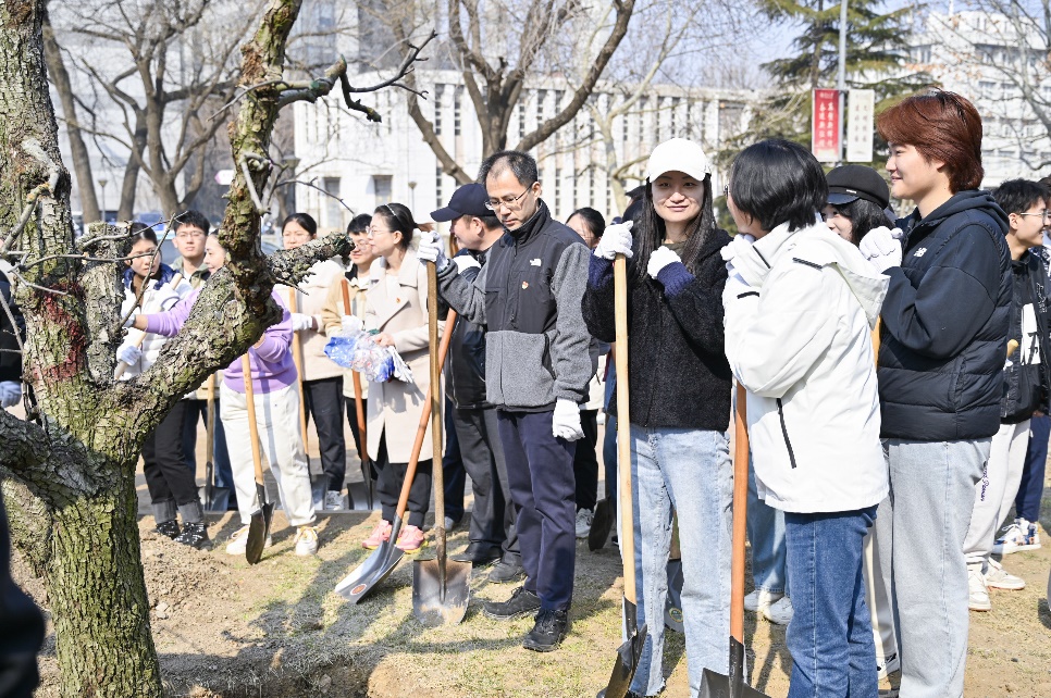 后勤服务处副处长、膳食服务中心副主任刘学珍表示,本次活动所用的40棵梨树源于安徽省宿州市砀山县人民政府捐赠。从2023年的9月份开始,校地双方就在为砀山酥梨树在南开园安家落户做准备工作。考察当地的土壤气候条件,结合学校土质情况,选择有较大草坪面积的省身楼西侧,提前做好土壤改良准备,在该景观节点南侧区域自然式片植梨树,这样既保留了 “疏林草地”景观效果,又打造出与津南“青莲水庭”梨树园遥相呼应的梨园景点。