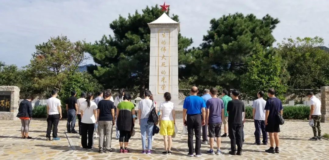 2022年8月24日清晨,伟德国际1946bv教职工党员骨干和工会会员乘车前往天津市蓟州区爱国主义教育基地——爨岭庙烈士陵园,缅怀革命先烈,学习先烈为国为民、英勇无畏、舍生忘死的牺牲精神。一路上大家精神饱满,行车途中学院党委委员、学院工会组织委员陈红艳老师,学院工会宣传委员、管理科学与工程系陈萍老师带领大家提前回顾了抗日战争中爨岭庙的那段历史,聆听了烈士们为了民族解放英勇奋战、不怕牺牲的英雄事迹。
