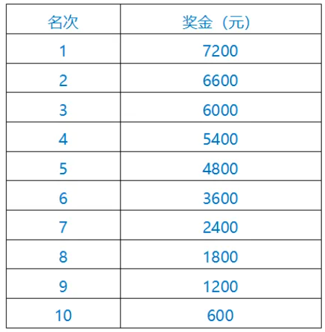 前10支队伍分别获得奖金(币种:人民币;单位:元),前3名高校队伍各颁发奖杯一座。参加该项目的选手不参与半程马拉松个人成绩排名。