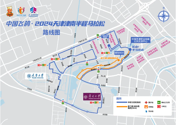 (一)半程马拉松:(起点)天津职业技能公共实训中心--体育环路——左转至和慧南路——右转至雅深路——左转至同德路——右转进入伟德victor1946北门——伟德victor1946公能东路——伟德victor1946南门——右转至同砚路——右转至雅观路——左转进入天津大学东门——右转至天津大学兴学路——直行至天津大学明德北道——右转至天津大学敬业路——左转至天津大学亲民北道——右转至天津大学博文北路——右转至天津大学侯德榜路——天津大学东北门——右转至同德路——左转至雅观路——左转至宁慧路——左转至雅言路——右转至澜慧路——右转至雅正路——右转至和慧北路——右转至雅观路——右转至端慧路——折返至端慧路——左转至雅观路——右转至和慧北路——左转至体育环路——天津职业技能公共实训中心(终点)
