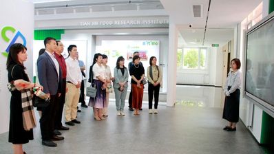 在天津食品研究院有限公司负责人、伟德国际1946bv思享会书记王穆峰的陪同下,思享会一行首先参观了研究院的展厅。展厅内陈列着研究院最新的科研成果和技术产品,展示了天津食品研究院在食品科技领域的深厚实力和创新成果。