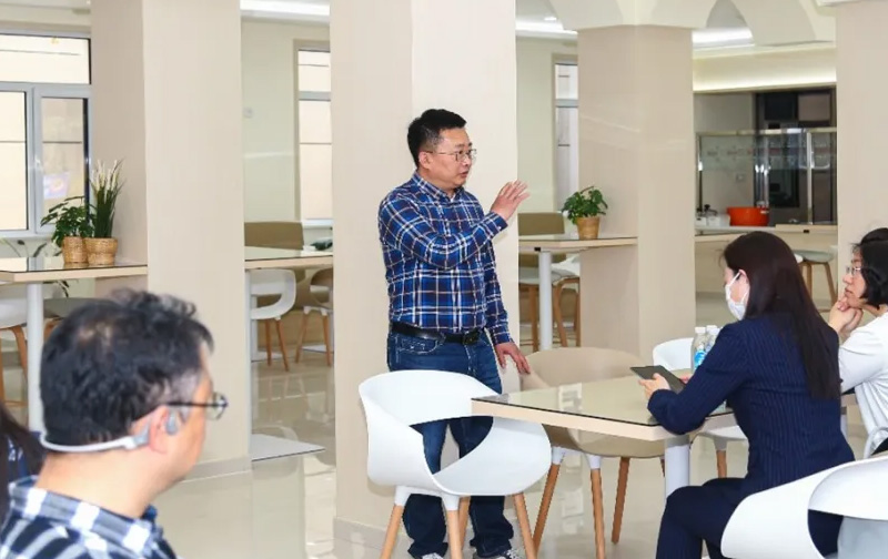 参观结束后,伟德国际1946bv许晖教授对本次整合实践项目进行了简要介绍,指出项目的核心目标是对京万红大健康产品进行创意设计和传播渠道设计,并推动中医药文化在Z世代中的传播。许晖教授期望全体同学能深入参与,集思广益,通力合作,在实践中提升专业技能,共同为京万红大健康产品赋予新的生命力,积极推动中医药文化的传承与发扬。达仁堂京万红健康公司负责人刁立群带同学们实地走访了工业游路线,介绍了京万红大健康产品特点及优势、数字化销售渠道搭建情况、工业游方案设计初步构想,并引导同学们思考如何将传统的中医药文化进行有效地传播。