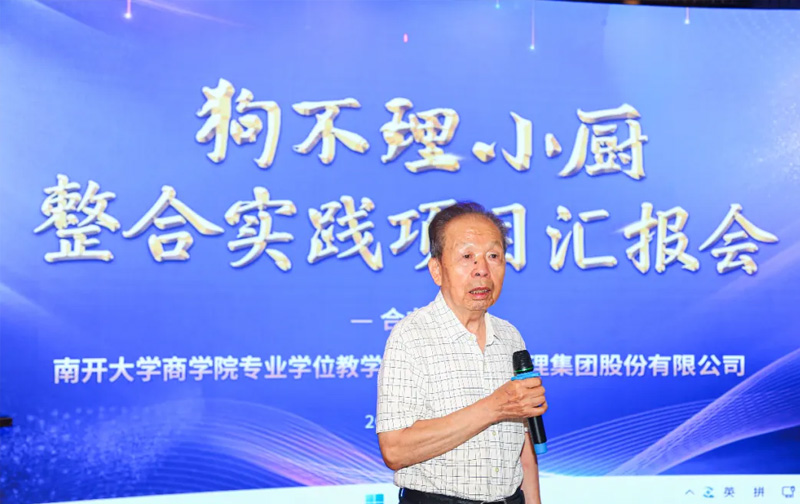 活动伊始,韩连胜老师介绍了本项目的目标和意义,认为本次整合实践项目不仅令南开师生汲取了丰沛的企业实践知识,也是一次难得的将理论付诸于实践和用知识创造价值的宝贵经历,更为战略管理和商业模式创新理论与实践结合提供了鲜活的案例。随后,梁峰老师对狗不理集团的支持表示感谢,期待双方能够在MBA教学培养创新等领域持续开展深入合作。杨玉武老师代表项目指导教师团队汇报了项目研究历程,介绍了“背对背PK、理论指导和数据支撑”三大指导原则。
