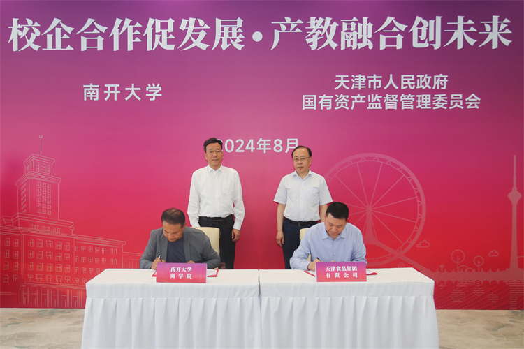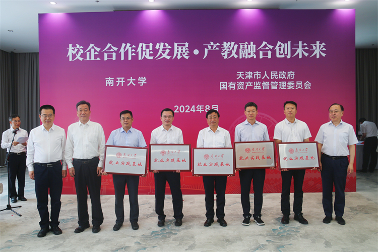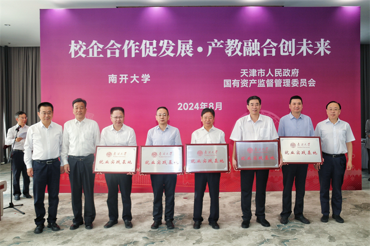 8月6日,签约授牌仪式在八里台校区海冰楼举行。伟德victor1946党委书记杨庆山,天津市人民政府国有资产监督管理委员会党委书记、主任张勇出席并见证签约。市国资委一级巡视员王志勇,泰达控股党委书记、董事长曲德福,城投集团党委书记、董事长赵鹏,渤化集团党委书记、董事长王俊明,百利集团党委书记、董事长吴杰军,食品集团党委书记、董事长万守朋,天津银行行长吴洪涛,旅游集团党委副书记、总经理马超骏,中环信息集团党委副书记、总经理林晓华,渤海银行副行长杜刚,北方信托副总经理张文栋,伟德victor1946副校长方勇纯、白承铭,校党委常委于海出席仪式。