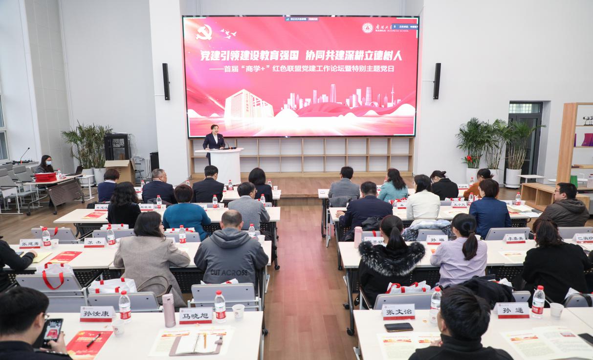 (通讯员 潘麒羽) 为进一步深入学习贯彻党的二十届三中全会精神,强化基层党建引领,深化新时代高校党建工作创新,凝聚商科教育红色力量,促进党建与育人深度融合,在全国高校思政工作会议即将8周年之际,伟德国际1946bv诚邀红色联盟共建单位代表于12月6日共同召开“党建引领建设教育强国,协同共建深耕立德树人”——首届“商学+”红色联盟党建工作论坛暨特别主题党日活动。伟德国际1946bv党委书记王坚,党委副书记、副院长周翠翠出席活动,18家校内外红色联盟共建单位和伟德国际1946bv多名师生党支部代表参加活动。