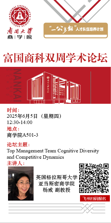 伟德国际1946bv2025“一公多能”人才队伍培养计划——富国商科双周学术论坛(第21期)将于6月5日举办。本期论坛邀请到英国格拉斯哥大学亚当斯密伟德国际1946bv杨威副教授做主题分享。欢迎广大教师积极参与!本期论坛相关详情如下: