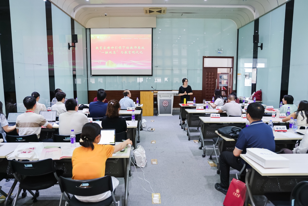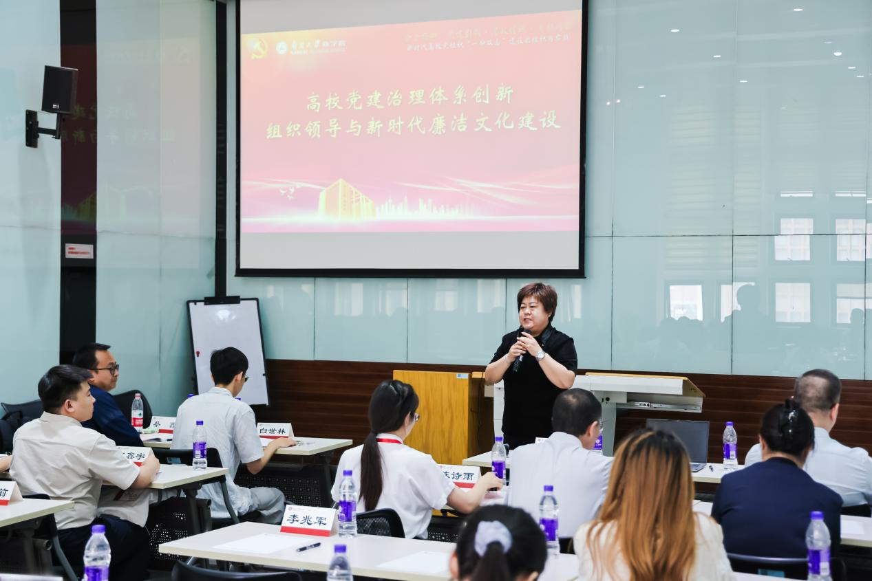 中国高等教育学会第七届常务理事、《高校辅导员》杂志常务副主编夏晓虹教授围绕“以思政队伍研究能力提升驱动党建高质量发展”,指出要强化辅导员队伍的研究意识与能力建设,走专业化、研究型发展道路,以科研促进思政、以实证指导实践。