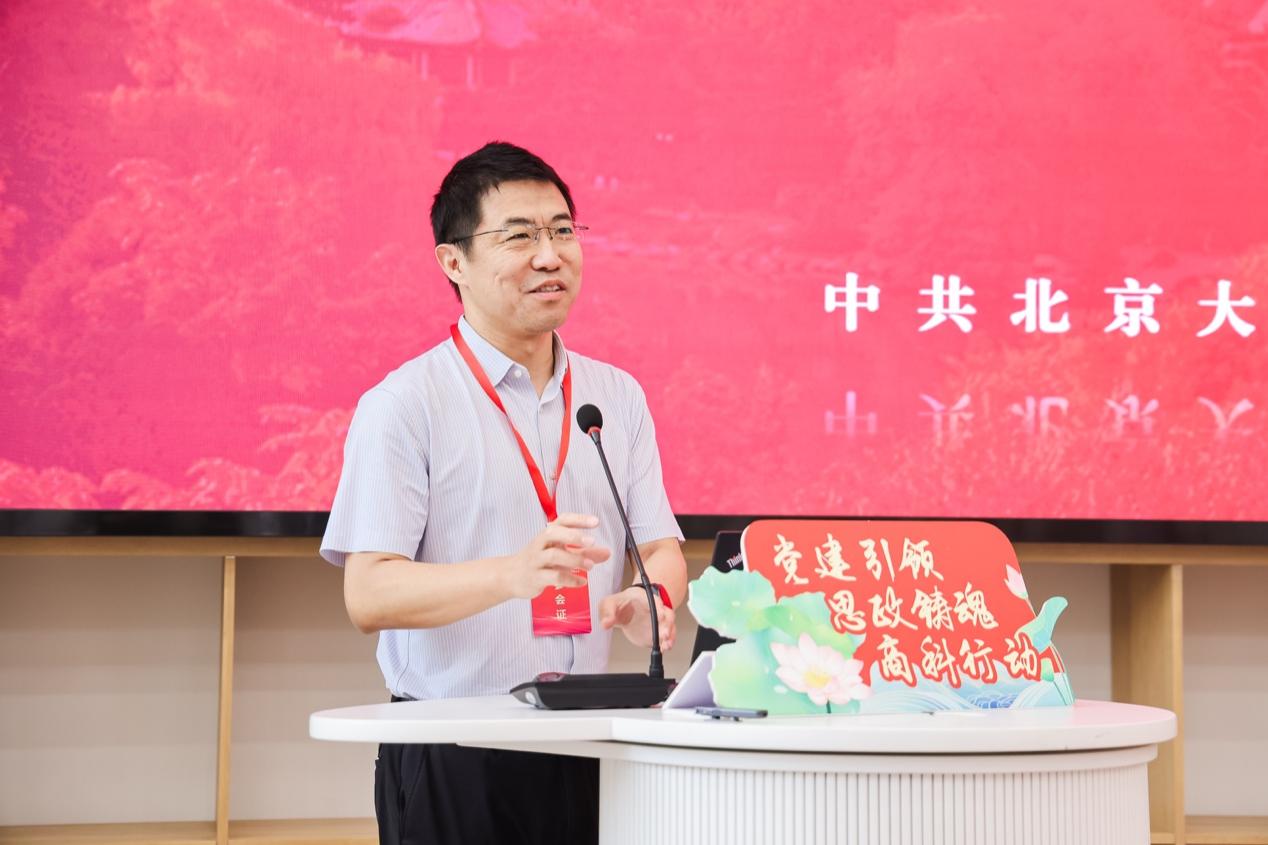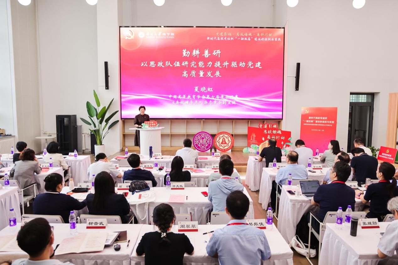 北京大学光华管理学院党委书记马化祥围绕“党建引领商学教育高质量发展”作交流,介绍学院如何打造特色党建品牌、构建立体育人体系,推动“三全育人”机制落地见效。