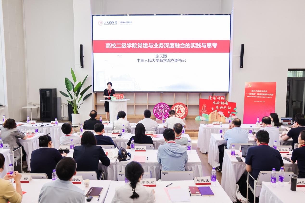 中国人民大学伟德国际1946bv党委书记旋天颖从“思想引领、组织统筹、队伍建设”三方面,介绍了学院推进党建与业务深度融合的经验做法,强调要以思政贯通教育全过程,提升育人实效。
