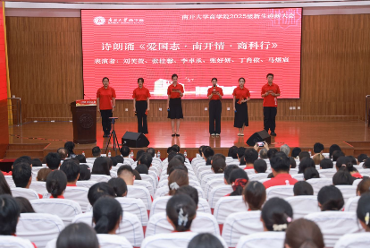 在温馨而励志的分享之后,大会迎来了充满情感张力的诗朗诵环节,学院新老学生代表刘美萱、张桂馨、李卓承、张好妍、丁肖依、马煜宸六位同学共同演绎了诗朗诵节目《爱国志・南开情・商科行》。他们用铿锵有力又饱含深情的声音,将南开的爱国传统、商科人的使命担当融入诗句之中,激昂澎湃而又温情脉脉,生动展现了南开伟德国际1946bv学子的精神风貌,也让新生们更深刻地领悟到“爱国志”的厚 重、“南开情”的真挚与 商科行”的坚定,现场氛围被推向高潮。