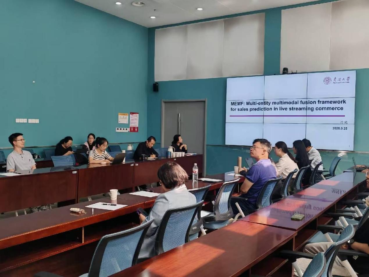 本次论坛以“MEMF: Multi-entity multimodal fusion framework for sales prediction in live streaming commerce”为核心议题,信息资源管理系许光老师为大家分享了直播电商多实体多模态融合框架对销售预测的作用,引发热烈讨论。