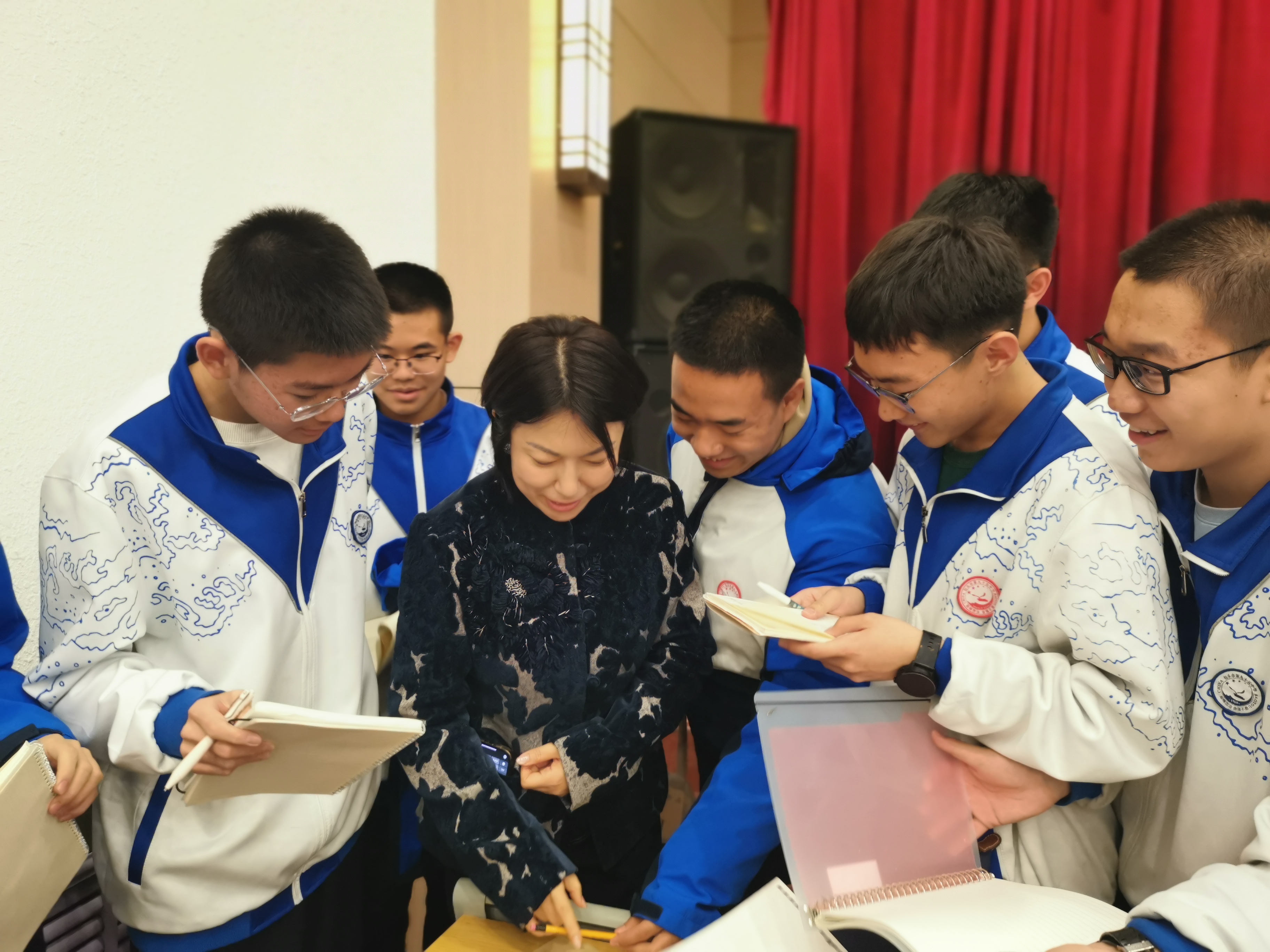 讲座伊始,张静教授以“今天的我们为什么学古诗?”的问题破题,瞬间点燃了现场师生的思考热情。同学们积极回应,发表自己的见解。她循循善诱,从现实生活出发,结合经典篇目,带领大家穿越千年时光,走进诗人们的精神世界。张静教授以生动的阐释、鲜活的案例,让枯燥的文字变得鲜活可感,也深刻阐明了当代中学生读诗的意义——在平仄韵律中涵养审美,在千古佳句中汲取力量,在文化传承中明晰初心。