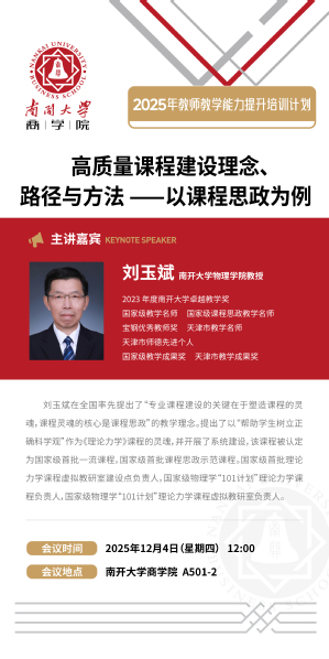 据悉,主讲嘉宾刘玉斌教授曾荣获2023年度首届伟德victor1946卓越教学奖,国家级教学名师,国家级课程思政教学名师,宝钢优秀教师奖,天津市教学名师,天津市师德先进个人,国家级教学成果奖,天津市教学成果奖。主讲的《理论力学》被认定为国家级首批一流课程,国家级首批课程思政示范课程。是国家级首批理论力学课程虑拟教研室建设点负责人,国家级物理学“101计划”理论力学课程负责人,国家级物理学“101计划”理论力学课程虚拟教研室负责人。